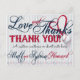 BASEBALL MARIAGE MERCI POSTCARD 2b-*Cette carte de remerciement est customisée pour un CLIENT SPÉCIFIQUE SEULEMENT. Celui-ci est pour eux. Un autre nom de départ sera disponible. A propos de la conception : L'arrière - plan est recouvert de fines rayures verticales bleues et blanches. Verre décoratif Texte sur le dessus : Amour et Merci. Le texte rouge décoratif suivant se lit : MERCI! dans les lettres imprimées. Une note personnalisée en noir cursif passe avant la signature. Signature en verre décoratif avec le nom de la mariée et des mariés. Une petite bordure horizontale de minuscules billes coule à travers le fond. L'arrière de la carte postale est également orné d'ornements. Le texte en verre Love and Thanks, les couples nomment texte en verre et diviseur vertical de baseball. Ce design est disponible comme indiqué en bleu et aussi en rouge. N'oubliez pas de customiser les notes avant et arrière dans votre propre texte. Modifiez les zones de texte ou supprimez/effacez-les pour une carte blanche.
