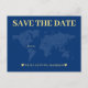 Monde bleu et jaune mariage enregistrer la carte de date pour un mariage de destination. Personnalisez-le avec vos informations d'événement.