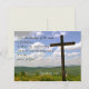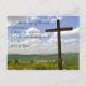 Carte postale de la croix chrétienne et des écritures. Courrier vierge avec photographie pittoresque et libellé personnalisé. Exemple de verset est de 1 Corinthiens et dit : "Car le message de la croix est la folie à ceux qui périssent, mais à nous qui sommes sauvés, c'est la puissance de Dieu." Reverse est vide pour toute raison. Les montagnes sont en vue d'où se dresse cette croix de bois sur une colline avec un drapeau américain à la base.