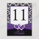 Cette carte postale de numéro de table damassée en noir et blanc a un ruban violet IMPRIMÉ et une paire de parties scintillant IMPRIMÉES FAUX et de bijoux en diamant ont joint le coeur sur elle qui correspond au faire-part de mariage ci-dessous. **Vous devez changer le numéro 11 à chacun des numéros de table dont vous avez besoin, l'ajouter à votre panier, puis revenir et répéter le processus jusqu'à ce que vous ayez toutes les cartes numérotées individuellement dont vous avez besoin dans votre panier. Placez-le sur un petit chevalet ou dans vos pièces centrales. Si vous avez besoin d'aide, envoyez un courriel à niteowlstudio@gmail.com.