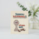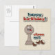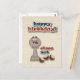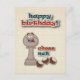 Carte postale Joyeux Anniversaire illustrant l'illustration d'un pion d'échecs, de châtaignes et le texte "noix d'échecs". Le pion d'échecs a un regard fou sur son visage avec des dents montrant et la langue traînant dehors.