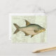 Cette impression artistique illustre une peinture détaillée d'un poisson d'eau douce. L'arrière - plan est une carte vintage de couleur aquatique claire. Ce design s'adapterait parfaitement à tout produit de votre collection de pêche.