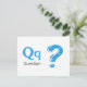 "Lettre Q est pour question" dans notre ensemble de cartes Alphabet Flash. Obtenez les 26 lettres de l'alphabet ! Une carte postale recto verso qui est idéale pour les jeux de mémoire et l'enseignement, destinée à l'éducation, les écoles, les enseignants et les écoles pour les enfants et les enfants. Tout le texte est modifiable si vous devez customiser.