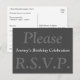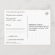 Ce design respectable et élégant de carte postale RSVP comporte le message "Please R.S.V.P." sur le devant, ainsi qu'une description customisée de l'occasion. Il comporte également un formulaire RSVP personnalisé au verso, ainsi qu'une adresse personnalisée à laquelle les cartes RSVP remplies seraient envoyées par la poste. Les cartes RSVP comme celle-ci peuvent être utilisées pour savoir qui assistera à un dîner, à un baby shower, à une réception de mariage ou à une autre célébration.