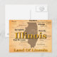 Image de papier antique âgée de fierté d'état de l'Illinois comprenant la silhouette de carte avec des villes, des villes et le surnom.