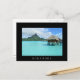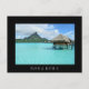 Carte postale avec luxueux resort de bungalows sur l'eau dans le lagon bleu clair de l'île pacifique de Bora Bora, près de Tahiti en Polynésie française avec une frontière noire et le texte : "Bora Bora".
