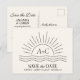 Sun & Waves Boho Beach Wedding Enregistrer la date Carte postale. Customisez avec vos initiales, noms, date et emplacement. Modifiez le type de papier et retirez également le logo Zazzle.