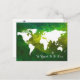 Envoyez une bonne nouvelle à quelqu'un avec la conception d'une carte blanche du monde sur une aquarelle verte, un petit avion, et une citation personnalisée "Voyager c'est vivre"