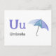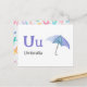 Postale U est pour Umbrella - Carte Flash Alphabet