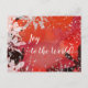 Joy to the World! Christmas card. Modern painting with red hues and frosty leafs