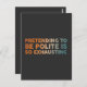 Showcase your humourous side with this witty tee, perfect for those who find pretending to be polite exhausting. Ideal for introverts and anyone who values honesty, this shirt captures the struggle of social niceties. Wear it proudly and let everyone know you're all about keeping it real