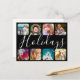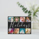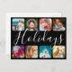 Solid black personalized 8 rounded square photos postcard with holidays text. Send while on vacation.