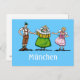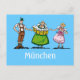 Quality Postcard with an original german Design. A happy BEER FESTIVAL couple in a traditional Dirndl and Lederhosen outfit welcomes a waitress with many beer steins. Text elements can be edited easily. Design by Frank Ramspott, Munich, Germany.
