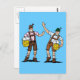 Quality Postcard with an original german Design. Two happy Oktoberfest men in a traditional Lederhosen outfit with Beer Steins. Illustration by Frank Ramspott, Munich, Germany.