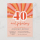 Add a trendy, retro-inspired vibe to your event with these 40th birthday party invitations. Simple design and easy to customize with all the party details. Peach, pink and red background swirl with the text: "40 and fabulous! Join the celebrations for (name's) birthday". Bright, bold and colourful! What could be more fabulous?