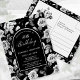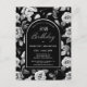 Very elegant black and white rose floral pattern creates an 30th birthday postcard invitation template. White text and calligraphy are framed by a black arch edged in white. This item is part of the Black and White Rose Floral Collection. it contains templates to create a unique invitation suite, welcome signs and party decorations.