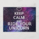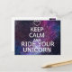 POSTCARD "KEEP CALM AND RIDE YOUR UNICORN" GALAXY