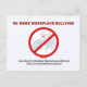 You can use this postcard to send your legislator a message about the difficulties of being targeted by a workplace bully. This postcard is designed to educate all those who handle it as it travels through the US mail and is delivered to the recipient. This postcard also educates those who do not understand that workplace bullying results in severe outcomes for targeted workers. A portion of each sale supports Workplace Bullying Safe Harbor, a community support and resource site for targeted workers and their allies.