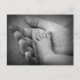 Postcard of baby's foot in mothers hand.