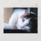 Postcard of cat with scratching post.