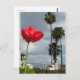 Poppy aspires to reach the clouds like the palm trees in the background do. Red flower reaches up to the dark clouds that cover the sky above several palm trees. Sunlight plays on the underside of the red petals.