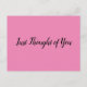 Classy, but simple postcard for those times when you have a specific fleeting thought about someone and want to 'quickly' let them know. A phone call will certainly do, but this special keepsake lasts for however long the recipient desires. Reach out and surprise someone with your thoughtfulness! There are loads of color and a variety of messages to choose from.