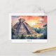 Travel postcard with Chichen Itza, famous El Castillo pyramid of Maya Empire, Mexico.