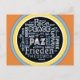 Postcard with chrome peace in multiple languages. This is a multiple language peace design I recently updated from an original I created some 25 years ago. It became famous on button badges and postcards as well as shirts. The original was created in Letraset - if anyone remembers that!? Now available again in a variety of image styles for the 21st century!! Including this cool chrome effect.