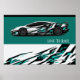 Poster shown with a photo print of a sleek race sports car.