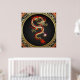 Présentation de la série "The Great Dragon Spirits", qui fait partie de la collection "Treasures of China" de C.7 Design Studio, présentant des peintures numériques méticuleuses représentant divers artefacts et thèmes chinois. Vous y trouverez des reproductions de toiles d'art encadrées et emballées/étirées, avec le Dragon chinois d'or Fucanglong (伏 藏 龙) avec la Perle magique. Un dragon est une créature légendaire, typiquement aux traits serpentin ou reptilien, qui se retrouve dans les mythes de nombreuses cultures. Il existe deux traditions culturelles distinctes de dragons : le dragon européen, dérivé des traditions folkloriques européennes et finalement lié aux mythologies grecques et du Moyen-Orient, et le dragon chinois, avec des homologues japonais (à savoir le dragon japonais), coréen et d'autres pays d'Asie de l'Est. Les deux traditions ont peut-être évolué séparément, mais elles se sont influencées dans une certaine mesure, en particulier avec le contact interculturel des derniers siècles. Le mot anglais "dragon" vient du grec δ ρ ά ω ν (drákōn), "dragon, serpent de taille énorme, serpent d'eau". Les dragons chinois sont des créatures légendaires de la mythologie chinoise et du folklore chinois. Les dragons ont de nombreuses formes animales comme les tortues, les poissons et les créatures imaginaires, mais ils sont le plus souvent décrits comme des serpents avec quatre pattes. Dans la terminologie yin et yang, un dragon est yang et complète un yin fenghuang ("le phénix chinois"). Les dragons chinois symbolisent traditionnellement des puissances puissantes et favorables, en particulier le contrôle de l'eau, des précipitations, des ouragans et des inondations. Le dragon est aussi un symbole de puissance, de force et de chance pour ceux qui en sont dignes. Avec cela, l'empereur de Chine utilisait généralement le dragon comme symbole de sa puissance et de sa force impériales. Dans la langue quotidienne chinoise, les gens excellents et exceptionnels sont comparés à un dragon, tandis que les gens incapables sans succès sont comparés à d'autres créatures méprisées, comme un ver. Un certain nombre de proverbes et d'idiomes chinois font référence à un dragon, par exemple : "Espérer que son fils deviendra un dragon" (望 子 龍, c'est-à-dire être comme un dragon). Dans la mythologie chinoise, le Fucanglong (chinois simplifié : 伏 藏 龙 ; chinois traditionnel : 藏 龍 ; pinyin : Fúcánglóng) ou le Fu-ts'ang-Lung (Wade-Giles) est le dragon du monde souterrain chinois qui garde des trésors enfouis, naturels ou artificiels. On dit que les volcans sont créés quand ils éclatent hors du sol pour se rendre au ciel. Futs-poumon possède une perle magique qui est son bien le plus précieux.