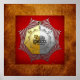 Présentation de la collection "Symboles Sacrés" de C.7 Design Studio. Vous y trouverez un design unique, avec un symbole du 16ème Degré maçonnique : Prince de Jérusalem. La franc-maçonnerie est une organisation fraternelle née d'origines obscures à la fin du XVIe au début du XVIIe siècle. La franc-maçonnerie existe aujourd'hui sous diverses formes dans le monde entier, avec un nombre estimé à environ six millions d'adhérents. La Fraternité est administrativement organisée en Grand Lodges indépendants ou parfois Orients, chacun gouvernant sa propre juridiction, qui se compose de Lodges subalternes (ou constituants). Il y a aussi des organes annexes, qui sont des organisations liées à la branche principale de la franc-maçonnerie, mais avec leur propre administration indépendante. Les leçons du 16° sont d'aider ceux qui travaillent à construire le Temple Symbolique, à juger équitablement et équitablement, à garder foi dans la justice et la bienveillance de Dieu et à avancer avec espoir pour les persécutés et opprimés. Ce degré enseigne "l'héroïsme de la patience, la noblesse de l'abnégation" et le jugement compatissant, ainsi que la charité, la fidélité et la fraternité. Le tablier est crimson, bordé d'or et d'aurora-couleur, et avec un carré, bouclier, Delta (avec trois YOD), équilibre, et une main de justice. Le bijou est une médaille d'or. D'un côté est gravée une main, tenant un équilibre égal, symbolisant la justice et la miséricorde de Dieu, tenue en équilibre par Sa seule volonté et sa sagesse infinie. De l'autre, il y a une épée à double tranchant, à bille croisée, avec une étoile au-dessus du point et deux de chaque côté. L'épée se tient debout, elle descend. D'un côté des étoiles se trouve la lettre "D", de l'autre la lettre "Z", les initiales de Darius et Zerubbabel.