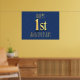1er anniversaire design sur un arrière - plan en faux cuir bleu.