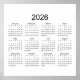 2026 Simple Minimalist Calendar Template - Sunday Start - Clean Black and White Grid Layout