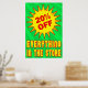 Annoncez votre 20% de réduction sur la vente à l'échelle du magasin avec cette affiche personnalisée. 20% De Réduction Sur Tout Dans Le Magasin.