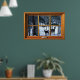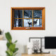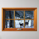 Poster 2 Cerfs dans la fenêtre de neige hivernale Illusio