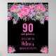 Elégant design pour une fête de 90ème anniversaire avec un rose "90 et fabuleux" et un nom scénarisé agrémenté d'une fleurs d'aquarelle féminine sur un arrière - plan blanc. Personnaliser âge, texte, nom et couleur arrière - plan.