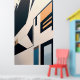 Precise lines and blocks of color form a composition reminiscent of futuristic urban façades. A visual play between light, shadow, and perspective.