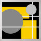 rectangles jaunes, cercles gris, lignes blanches, arrière - plan noir. #abstrait