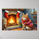 Poster Abyssinian Cat Sitting by Fireplace with Christmas