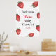 Ce panneau d'accueil baby shower à thème de baies amusant présente des fraises d'aquarelle. Personnalisez avec vos informations ou cliquez sur "Cliquez pour customiser plus loin" pour modifier les styles, la taille et les couleurs des polices.