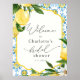 Accueillez vos invités à votre douche de mariage avec ce magnifique poster, doté d'une bordure mosaïque bleue avec de la verdure et des citrons à l'aquarelle. Ajoutez le nom de la mariée et la date de la douche en utilisant les champs fournis.