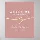 Elégante, moderne, minimaliste mariage rose poussiéreux affiche d'accueil avec faux coeur de corde or et script de calligraphie simple écrit à la main.