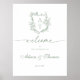 Elégante calligraphie sauge vert floral monogramme crête mariage classique accueil poster.