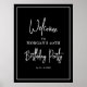 Poster Accueil pour la fête d'anniversaire Noir Blanc mod