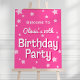 Ce panneau d'accueil d'anniversaire d'inspiration rétro présente un arrière - plan rose vif aux étoiles roses et à la typographie d'inspiration rétro. Le dos a la même couleur rose vif. Le look est amusant, féminin et heureux !