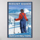 Skier Admiring - Mount Baker, Washington - Poster Vintage voyage a été créé en 2007. Cette image représente des scènes de Mount Baker, WA.