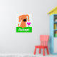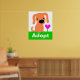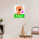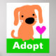 Poster mignon pour l'adoption d'un animal de compagnie. Chien orange avec fleur de coeur rose et l'oeuvre Adoptez ci-dessous.