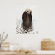adorable animal de loutre moelleux avec les mains sur les joues dans les réflexions d'eau imprimer image