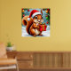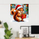 un écureuil joyeux habillé d'un chapeau de Père Noël, tenant un cadeau enveloppé. Parfait pour les salutations saisonnières, les thèmes de Noël et les décors festifs.