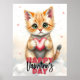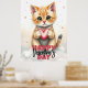 Poster Adorable Kitten tenant le coeur rose Saint-Valenti